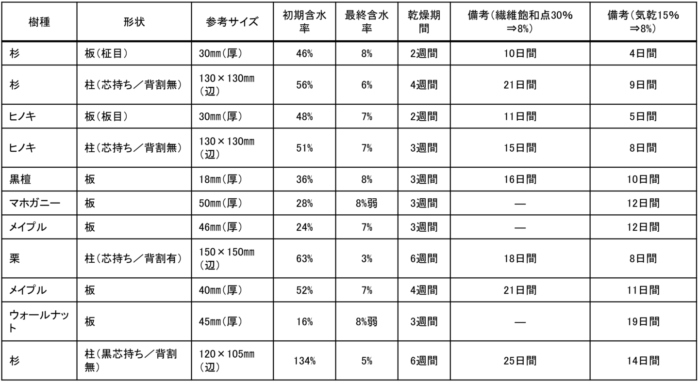 ※測定は高周波型含水率計もしくは重量比計測を使用