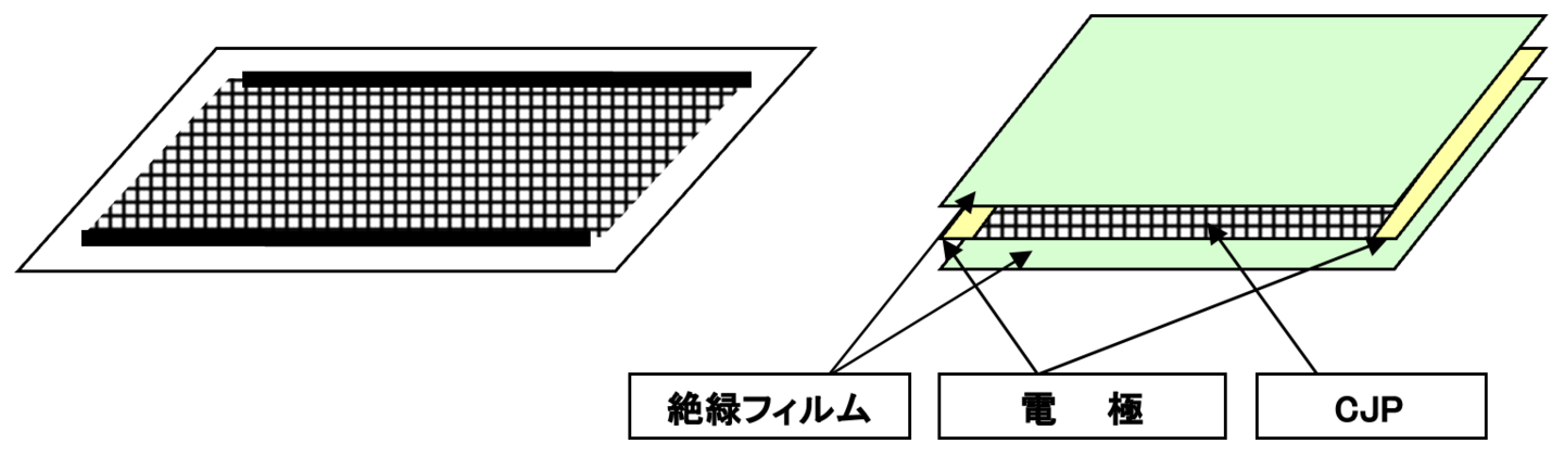 面状発熱体の最大の特徴は被加熱物を均一に効率良く加熱できることです。ニクロム線などの発熱体では、均一に加熱することが難しく線自体が高温になり、事故の原因になります。CJPは、過酷な温度環境変化に強く、直接加熱対象物に取り付けられます。電極部は加熱いたしません。又、紙パルプと伝導性カーボンチョップドの間に接着剤等不純物はいっさい入っておりません。