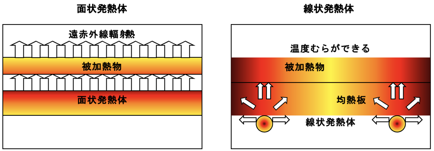 耐久性・安全性・柔軟性に優れており、低温から高温域まで効率よく均一で安定した輻射熱を出すことができ、様々な用途、形状に対応できます。